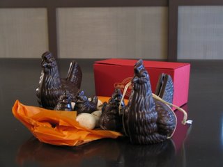 I managed to console myself with the chocolates du Pâcques, although this time I am going to be careful not to make it an addiction. Even I can tell that those cute little chicken and egg chocolates are not going to be around for long. 04/23/06